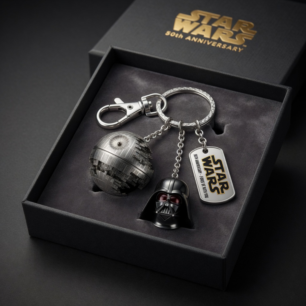 🌑🖤⚔️Unleash the power of the Dark Side with the official Star Wars 50th Anniversary Death Star & Darth Vader Premium Keychain — a striking metal collectible that lets you carry the ultimate symbols of the Empire wherever your journey takes you!